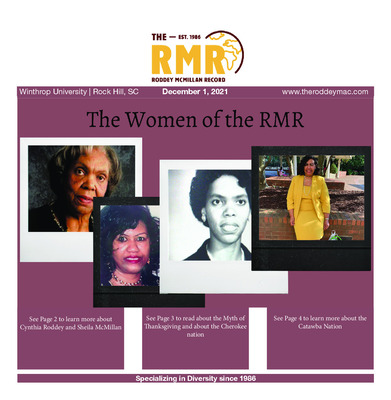 The Roddey McMillan Record (RMR) is Winthrop’s monthly multicultural student publication. The RMR has been a significant voice of the minority population of the Winthrop community since its creation by Gail Harris in April 1986. It promotes awareness and understanding of issues concerning minorities for the prosperity of the entire Winthrop community. The purpose of the RMR is to shine light on the many diverse cultures at Winthrop, focusing on issues, concerns and happenings of those who represent the multicultural community on campus. The Roddey McMillan Record is named after Dr. Cynthia Roddey and Atty, Sheila McMillan. Cynthia Roddey was one of the first African-American students to attend Winthrop University, and Sheila McMillan was the first African-American Winthrop alumni member of the Board of Trustees. The categories found in an issue of the RMR are feature, news, opinion, culture and lifestyle.
